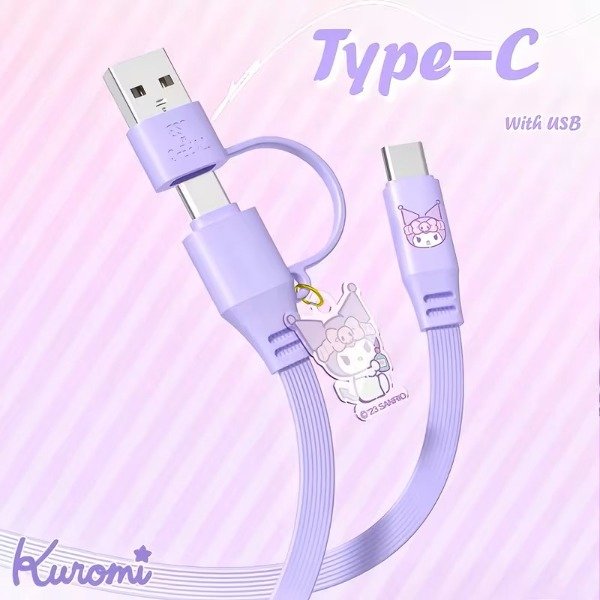 Cable Cargador USB Tipo C 2 en 1 Sanrio Original