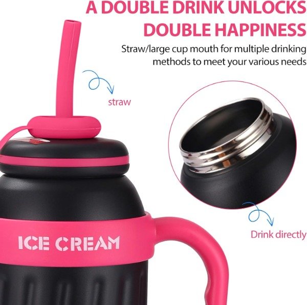 Lleva tu hidratación al siguiente nivel con nuestro Vaso Ice Cream, diseñado para entrar en cualquier portavasos y acompañarte en el auto, la playa, el gym o donde vayas. Su aislamiento de doble pared mantiene tus bebidas frías por 24 horas y calientes por 12.